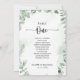 This classic eucalyptus table number 1 seating chart is perfect for a rustic wedding. The design features beautiful watercolor green eucalyptus leaves.