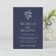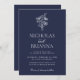 Classic Floral Navy Blue Wedding Minimalist Invitation