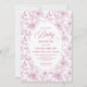 Celebrate your upcoming arrival with this elegant baby shower invitation featuring classic French toile de Jouy roses. Soft dusty pink, blush, and pink and white floral patterns create a timeless, romantic look accented by refined rose gold tones. Professionally printed by Zazzle, this design offers crisp details, beautiful color balance, and a smooth, high-quality finish that highlights the intricate rose pattern. Perfect for a classic, floral, or vintage-inspired baby shower, this invitation is fully customizable and arrives polished and photo-ready. A charming choice for welcoming baby with graceful, traditional floral style.