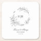 Classic Floral Wreath Monogram Wedding Square Paper Coaster