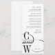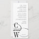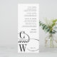 Elegant monogram menus for your wedding or rehearsal dinner feature your initials at the lower left, joined by an ornate swooping "and," on a crisp white background.