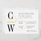 Sleek rehearsal dinner invitations feature your initials in elegant white lettering, joined by an ornate swooping "and" in gold foil. Personalise with your wedding ceremony rehearsal and dinner or celebration details.