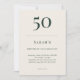 Deep forest green and linen cream birthday invitation featuring classic minimalist typography. Designed for a refined 50th celebration with customizable name age date time location and RSVP details.