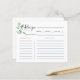 This classic formal green bridal shower recipe card is perfect a rustic bridal shower. The design features watercolor hand-drawn green leaves, inspiring natural beauty.