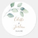 This classic formal green leaves wedding classic round sticker is perfect for a rustic wedding reception. The design features watercolor hand-drawn green leaves, inspiring natural beauty.