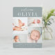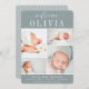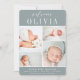 Elegant birth announcements feature four newborn photos arranged in a grid collage layout on a dusty sage green background. "Welcome [name]" appears at the top in chic calligraphy script and classic block lettering. Personalize with baby's full name, birth stats, and a family signature at the bottom. A simple and clean gender neutral design for announcing your little one's arrival.