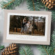Classic frame neutral beige tweed Christmas photo Holiday Card