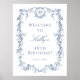 Elegant French Victorian blue floral birthday party welcome sign (poster) for any age. For more advanced customisation of this design, please click the DESIGN TOOL BUTTON above!