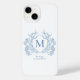 Classic French Blue Floral Crest Monogram iPhone 13 Case