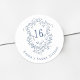 Classic French Blue Floral Crest Sweet 16 Birthday Classic Round Sticker