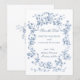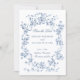This classic and romantic design is a modern adaptation of an historic French etched frame of dusty blue intertwined roses, flowers, foliage and ribbons ca 1770 by Rococo designer Pierre Ranson. It includes customizable text fields and a complementary floral graphic on the back.