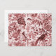 Introducing our exquisite Classic French Countryside Toile Du Jouy Postcard, where timeless elegance meets vibrant charm. Inspired by the iconic French toile de Jouy style, this postcard features a captivating pattern of delicate flowers and graceful birds, all rendered in striking shades of red and burgundy. The design depicts a classic French bucolic scene with pheasants, doves and flowers, reminiscent of the traditional French countryside. The back of the postcard provides ample space for you to write a heartfelt message, warm greetings, or a quick update. This pretty postcard would also look great in a frame sitting on the mantlepiece if you'd prefer to keep it for yourself as a lovely keepsake.