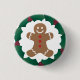 Button with a smiling gingerbread man in a holly wreath. Perfect for Christmas.