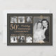 Perfect for a milestone anniversary, this photo card design can be customised for any year, but with gold accents it is especially appropriate for a 50th anniversary celebration. With space to feature 7 photos of the special couple, there's plenty of opportunity to showcase their lifetime together. Add all old black and white photos, as shown here, or photos from all the decades of their marriage for a "through the years" look - both are sure to delight your guests when they open the envelope of this invitation.