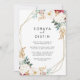 This classic gold floral back and front formal wedding invitation is perfect for a rustic wedding. The design features watercolor white, burgundy and gold flowers and berries with green foliage arranged into elegant bouquets, adorning a geometric frame.