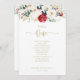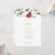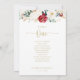 This classic gold floral table number 1 seating chart is perfect for a rustic wedding. The design features watercolor white, burgundy and gold flowers and berries with green foliage arranged into elegant bouquets.