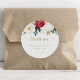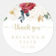 This classic gold floral thank you wedding favour classic round sticker is perfect for a rustic wedding. The design features watercolor white, burgundy and gold flowers and berries with green foliage arranged into elegant bouquets.