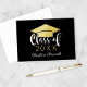 Celebrate in style with this stunning graduation thank you card featuring a faux gold metallic graduation cap on a rich black background. White script and gold accents frame your class year and personalised name for a luxe, timeless look. Customise the name and year for a card that shines as bright as your accomplishment.
