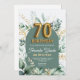 Commemorate a remarkable milestone with this timeless floral design! A striking gold "70" is elegantly framed by verdant green leaves, making this invitation ideal for a 70th birthday celebration. Personalise it with your name, age, and event details to craft a cherished memento. It’s a perfect way to unite friends and family for a day of joy and reflection!