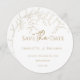 Introducing our Classic Gold Greenery Wedding Round Save the Date Design- meticulously designed to embody a modern romantic aesthetic. Featuring a classic blend of clean white backgrounds with delicate golden leaves gracefully complemented by a simple calligraphy script paired with an understated serif font. The result is a perfectly polished feel for your wedding, ensuring every detail reflects the elegance of your love story. This design provides an effortless option for presenting a truly beautiful and memorable marriage celebration. Whether your event graces the spring, summer, fall, or winter, the timeless vintage feel of this gilded design promises a charming and enchanted way to honour your unique journey together. We hope you fall in love with this collection as much as we have. For any questions or special requests for personalised products, please do not hesitate to reach out. We are delighted to help in any way possible.