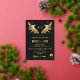 Celebrate love's timeless journey with this enchanting wedding card. A classic eagle gold wing takes flight, symbolising the soaring spirit of two hearts united in love. Against a backdrop of a complex collection of dried leaves, two delicate gold wine glasses stand as a toast to a lifetime of joy, happiness, and shared adventures.