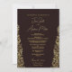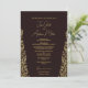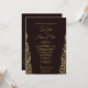 This wedding invitation card has an elegant and luxurious design with a deep maroon background and ornate golden Damascus-style patterns along the sides. The intricate gold flourishes frame the text beautifully, giving it a royal and classic appearance.