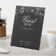 Introducing the timeless allure of our Classic Gothic Black Wedding Guest Book Pedestal Sign design, where elegance meets the ethereal. An enchanting touch of dark romance adorned with intricate botanical motifs, featuring black backgrounds embellished with lush peonies and delicate roses that exude a moody sophistication perfect for your special day. Offering an aesthetic of gothic opulence with the contrast of black and white floral elements against the deep dark, with white formal vintage calligraphy paired with sophisticated serif to create a balanced and versatile style especially perfect for fall and winter weddings, but equally suited for a mysterious, magical spring or summer event. As with all of our designs, if you have any special requests for coordinating products, please do not hesitate to reach out to us. We would love to help you fully capture your perfect romantic gothic love story.