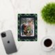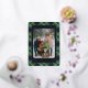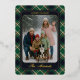 This elegant and contemporary holiday card features a plaid pattern adorned with the classic "Happiest Holidays!" message printed in real gold foil. It showcases shades of green, dark blue, and red, creating a classy and traditional English holiday ambiance. You can personalize it by adding your family photo and name on the front and a personal message on the back. This card is perfect for sending Christmas messages and wishes in a traditional colonial style, making it an excellent choice for a charming, sophisticated theme.