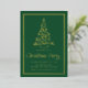 Celebrate the season in style with this Christmas party invitation featuring a traditional green background, a hand-drawn Christmas tree, and a gold foil double border. “Christmas Party” appears in matching gold foil lettering, creating a warm and refined design. The green and gold foil colour pairing offers a classic holiday look, ideal for Christmas dinners, family gatherings, and corporate holiday parties.
