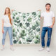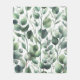Classic Green Eucalyptus Leaves on White Fleece Blanket