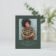 With its single vertical photo and simple, classic typography, this graduation announcement and invitation postcard is the perfect way to share your graduate news to friends and family and invite them to a graduation celebration. Suitable for guys and girls, it also works for both college and high school graduations. The classic hunter green background colour is editable by clicking "customise further" and this design is available in other formats as part of the Lea Delaveris Design Simple Classic graduation collection.
