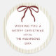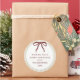 Classic Green Pink Stripes Red Bow Merry Christmas Classic Round Sticker.