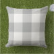A classic grey and white outdoor pillow with a large-scale gingham check pattern. The oversized grey check brings a polished, modern accent to patio furniture, deck seating, or covered porches. A versatile neutral pattern that coordinates with virtually any outdoor colour scheme.