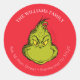 Add a Grinchy touch to your holiday mail with this "Classic Grinch Christmas" address round sticker. Featuring the mischievous Grinch from How the Grinch Stole Christmas, this sticker is perfect for sealing your holiday cards, gifts, or packages. Whether you’re sending out Christmas greetings or adding a festive flair to your wrapping, this sticker adds a playful and personal touch to your holiday correspondence. Ideal for Grinch fans, it’s a fun way to share some holiday cheer.