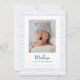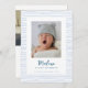 Celebrate the miracle of life, announce the arrival of your baby, and spread the happiness with this classic birth announcement. A keepsake that captures the essence of a moment, forever framed within hand-drawn blue stripes – a border that signifies the boundless love and joy your new journey holds.