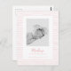 Classic Handdrawn Pink Striped Birth Announcement Postcard
