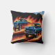 Classic hot rods racing through flames at sunset cushion