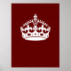 A classic Keep Calm Crown on a burgundy red decor. You can customise this with your text.