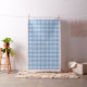 Stylish geometric fabric features a classic light blue and white gingham plaid. Baby blue, white, and pale blue squares form a bold, checked plaid. Perfect for home decor and accessories.