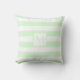 Classic light green white strips monogram cushion
