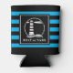Classic Lighthouse with your Personalised Name or Boat Name on a Light Blue and Black striped Can Cooler.