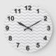 Classic Lt Gray White Thin Chevron Zig-Zag Pattern Large Clock