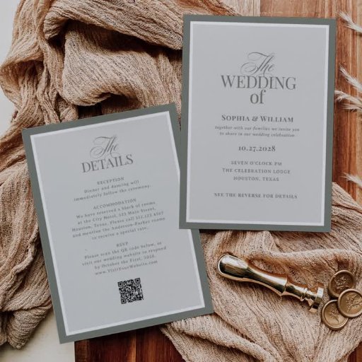 These elegant, old money style wedding RSVP response cards feature a sage green border, and a lighter sage green and white text design. There is a mix of classic text and modern calligraphy for a classy and minimalist design perfect for your timeless, formal wedding.