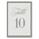 These elegant, luxe wedding table numbers feature a sage green border and a lighter sage green and white design. There is a mix of classic text and modern calligraphy for a classy and minimalist design perfect for your timeless, formal reception.