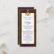This colourful plaid Scottish Clan MacDonald tartan wedding menu has graphics of a gold and red heart Celtic knot, above a white text area. Personalise the blue custom text for your highland wedding. Matching products are available.