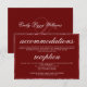 Classic vintage style crimson red calligraphy script personalised wedding enclosure card with blush tone abstract art. This product can be easily personalised.