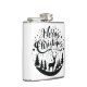 Classic Merry Christmas Deer and Tree Design Art Hip Flask