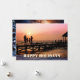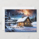 Elegant Christmas Holidays custom photo card. You can replace the photo on the front with your own custom photo. The back of the card features an illustration of a classic winter landscape with festively lit cottage and Santa flying through the night sky.