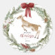 Classic Merry Christmas Winter Holiday Wreath Round Sticker