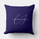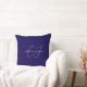 the front design shows a throw pillow with name and name monogram in white calligraphy and typography with blue background.